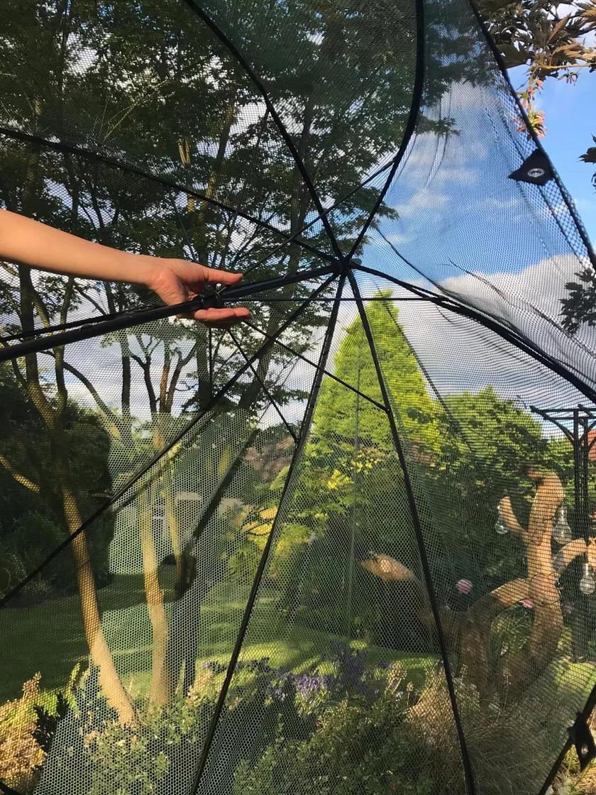 Keep bunnies from nibbling your lettuce, moths from laying eggs on your cabbages, and birds from stealing your berries! Ingenious design pops open and closed just like a rain umbrella, the “handle” pushes into the ground and voila ā instant protection for tender young plants. Can also be used to give a little shade from scorching sun.