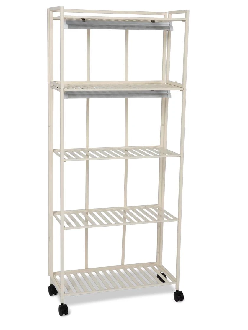 We’ve paired fold-up metal shelves with magnetic light fixtures to help you create optimal space and light for everything you want to grow indoors! Use just one high-output LED fixture per tier for lower-light plants, or use two if you have light-hungry ones! Choose a system with two or four LED fixtures depending on what you want to grow. Need more than four? Additional fixtures are available in sets of two. Entire frame folds flat for storage too. Matching trays sold separately.
